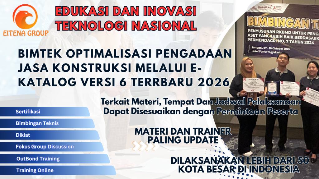Sehubung Dengan Penjelasan Di Atas, Dalam Rangka Memahami Serta Meningkatkan Kapasitas Dan Kapabilitas Pemerintah Pusat, Daerah Dan Swasta. Maka Kami Dari Eitena Group Pusat Pelatihan Mengajak Bapak/Ibu/Saudara(i) Untuk Mengikuti Bimbingan Teknis Dengan Tema tersebut diatas