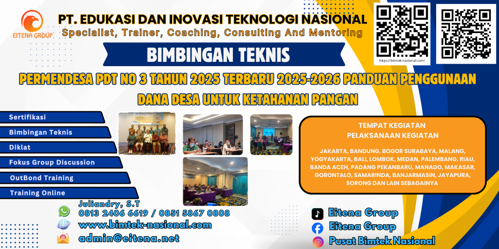 Bimtek Permendesa PDT No 3 Tahun 2025 merupakan kegiatan pelatihan yang ditujukan untuk memberikan pemahaman menyeluruh terkait peraturan terbaru mengenai tata kelola Dana Desa. Regulasi ini mengatur alokasi dan pelaksanaan program-program prioritas nasional yang dibiayai Dana Desa, dengan penekanan khusus pada Program Ketahanan Pangan.