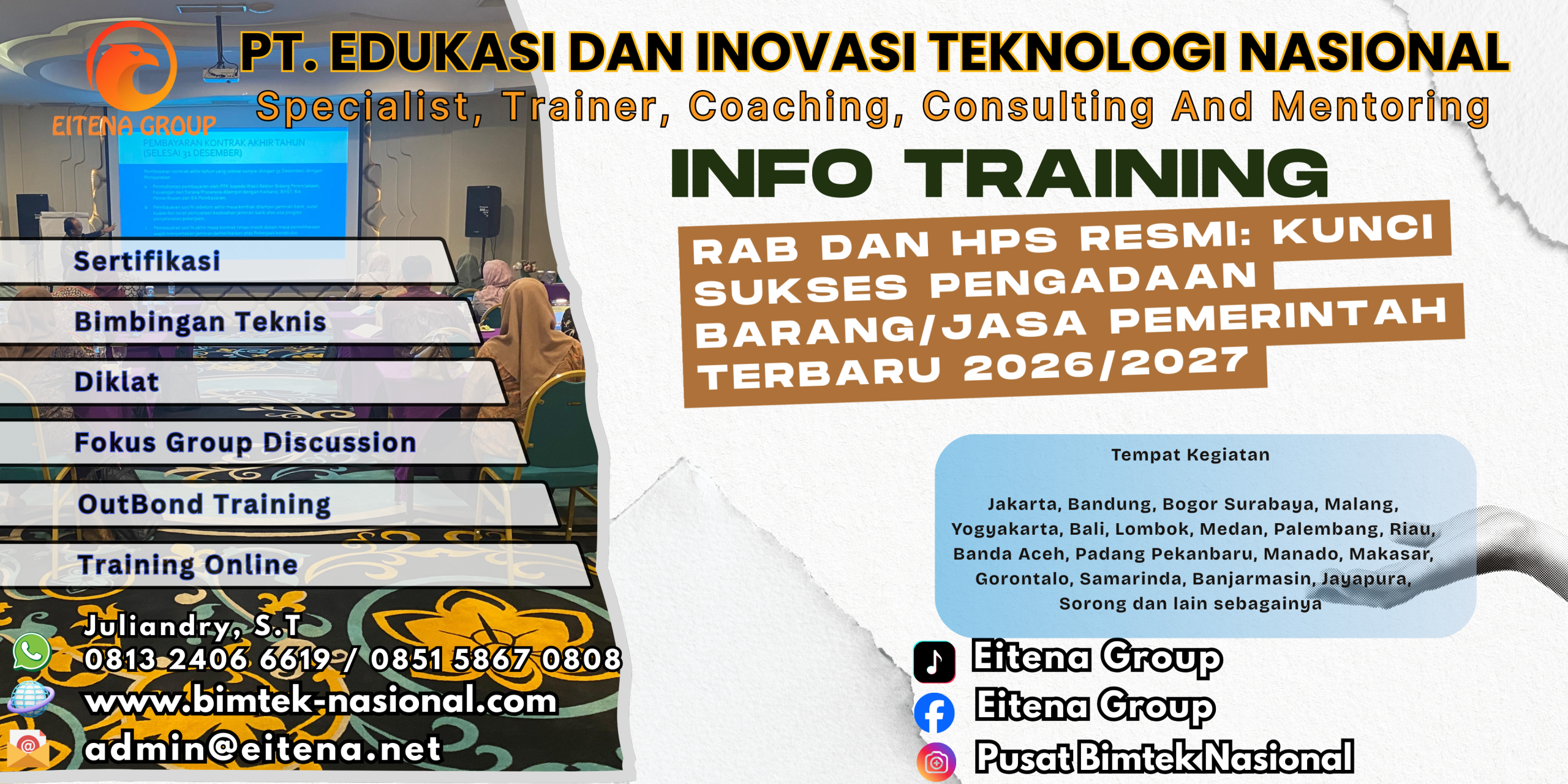 Sehubung Dengan Penjelasan Di Atas, Dalam Rangka Memahami Serta Meningkatkan Kapasitas Dan Kapabilitas Pemerintah Pusat, Daerah Dan Swasta. Maka Kami Dari Eitena Group Mengajak Bapak/Ibu/Saudara(i) Untuk Mengikuti Bimbingan Teknis Dengan Tema: Training RAB dan HPS Resmi